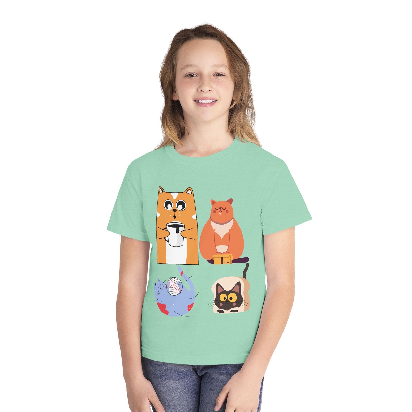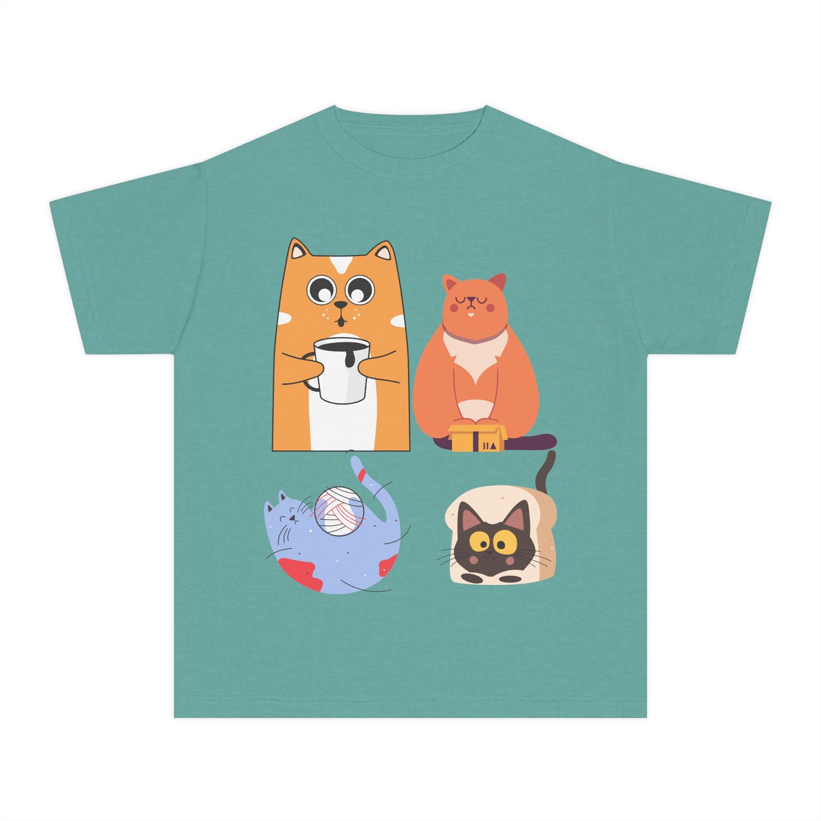Introducing a delightful Youth Midweight Tee that combines comfort and fun, perfect for your little ones. This tee features a playful design showcasing adorable cartoon cats in lively poses, making it a great addition to any child’s wardrobe. The soft fabric invites cozy wear, whether for playdates or lounging at home. With its classic fit, it’s suitable for various occasions, from birthday parties to family gatherings. This tee encourages self-expression and creativity, ideal for animal lovers who enjoy expressing their quirky style. Gift it for holidays like Christmas or as a thoughtful birthday present, making it a cherished favorite for kids and their parents alike!