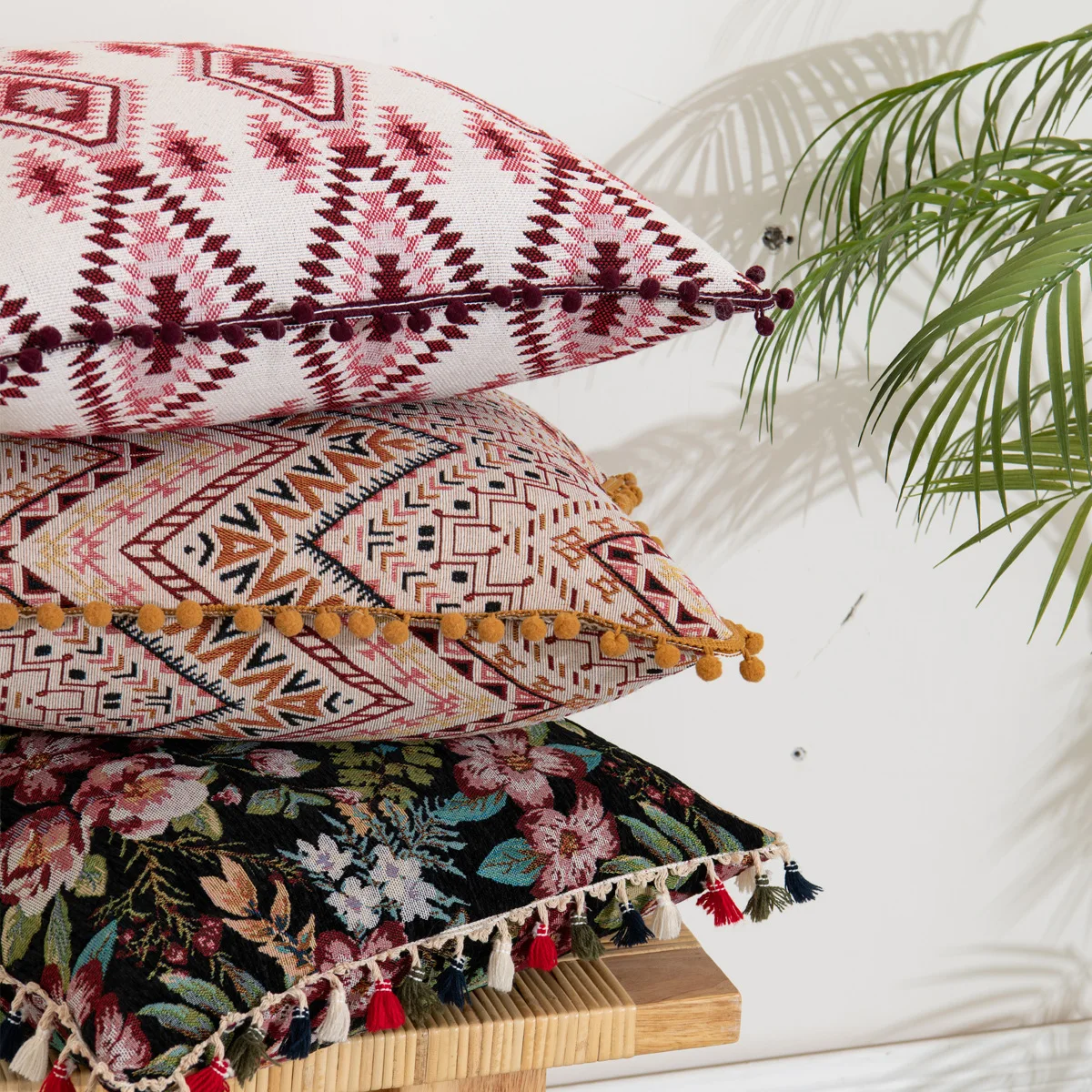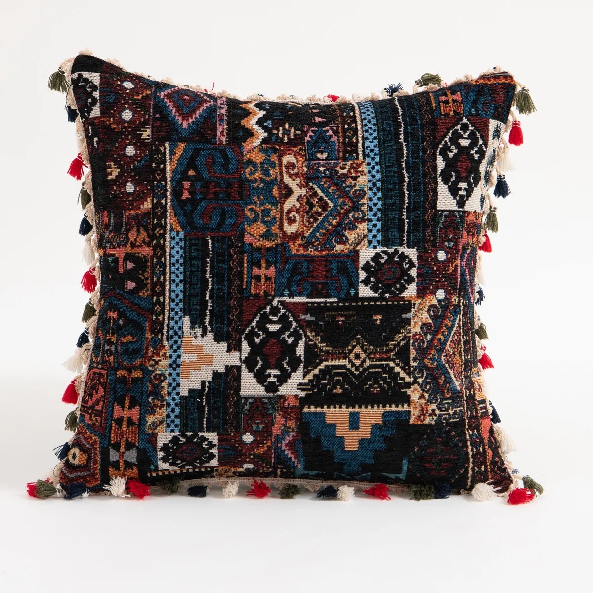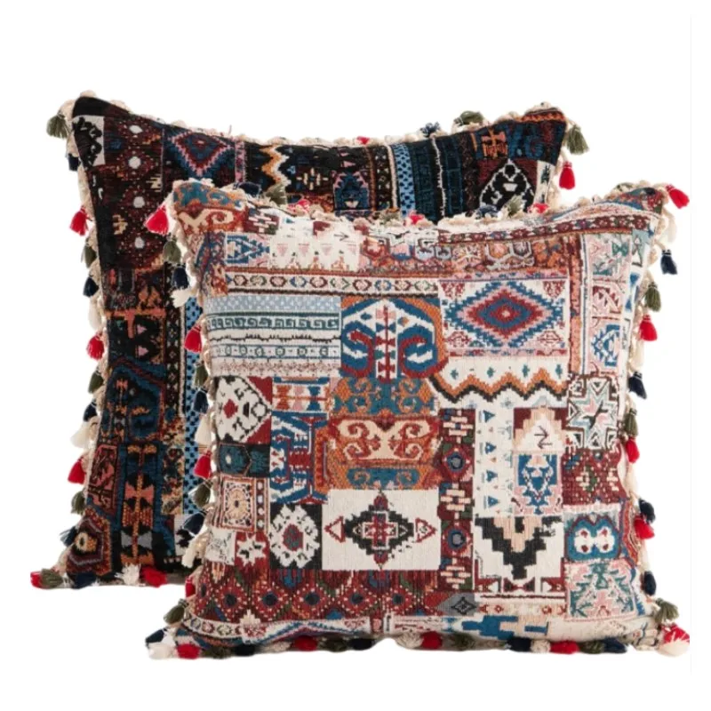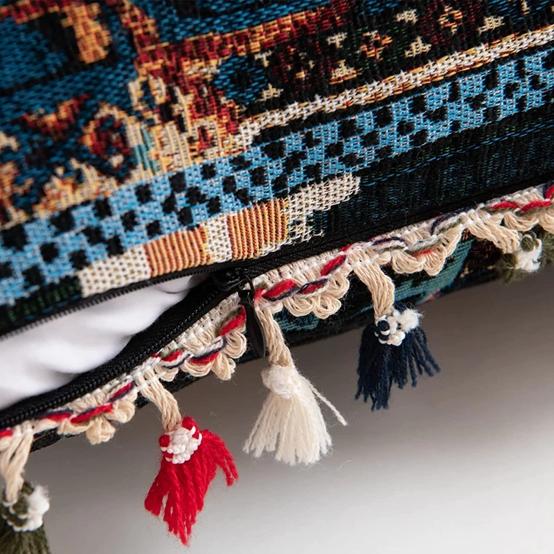 Vibrant bohemian style with colorful tassels on 4 sides to decorate home, sofa, couch, chair or patio