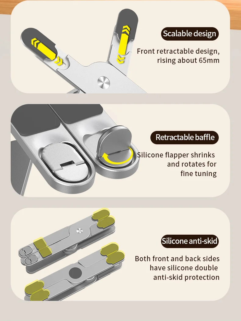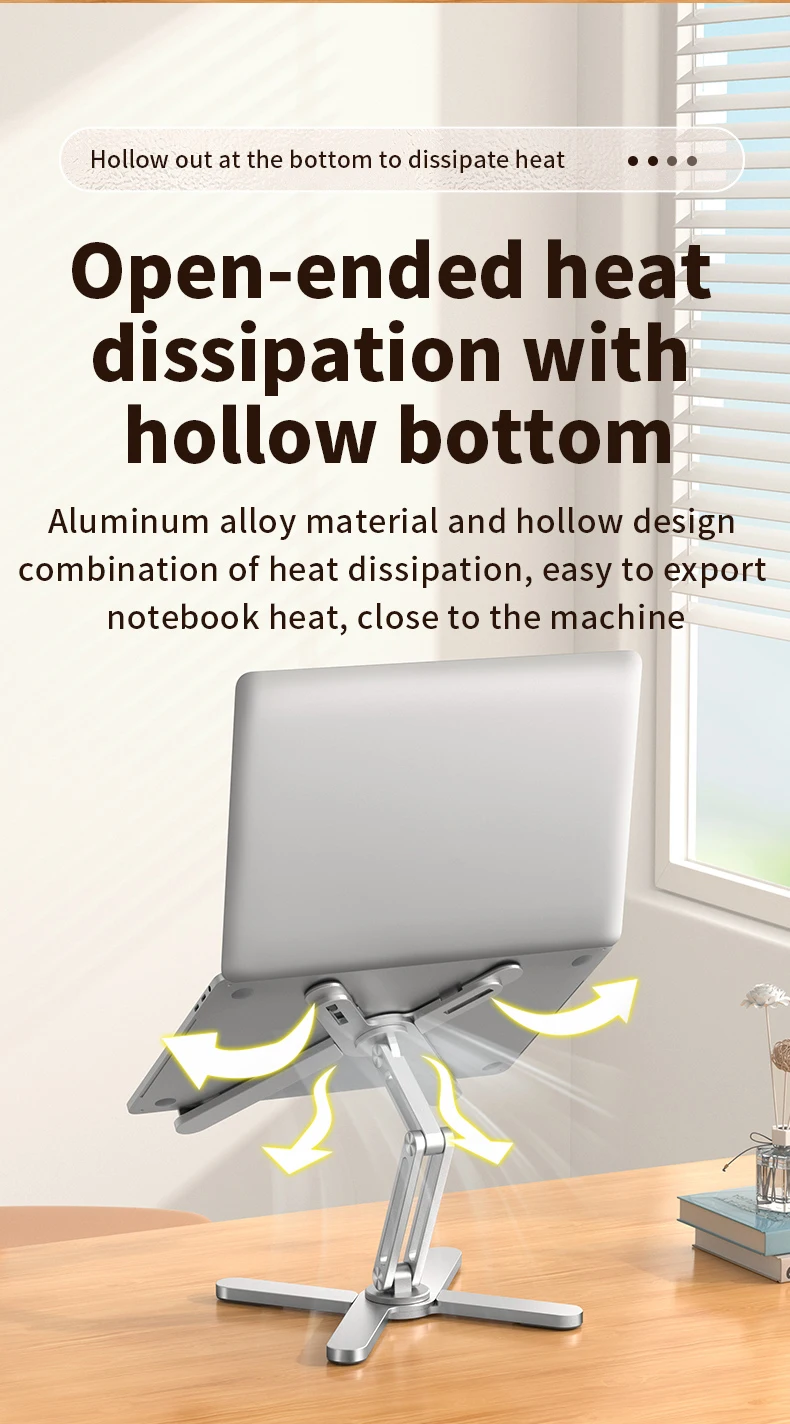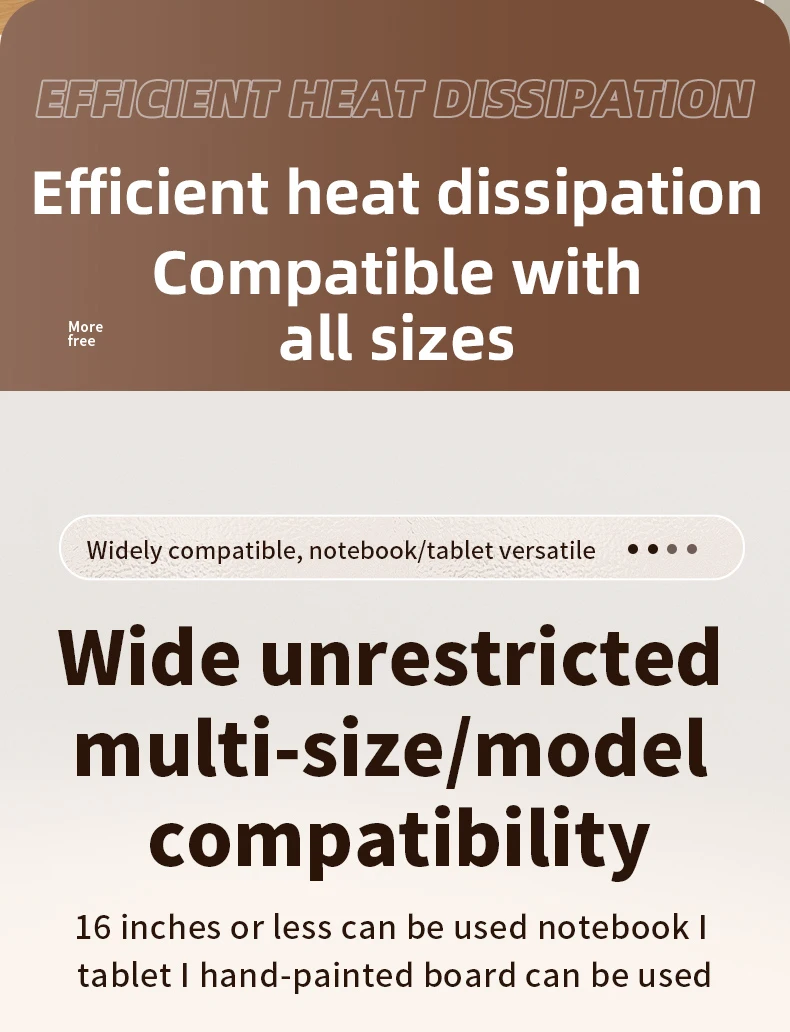 The advanced heat dissipation system keeps your device cool, ensuring optimal performance during long work or study sessions. Lightweight yet sturdy, the stand folds flat for effortless portability, making it perfect for use at home, office, or on the go.