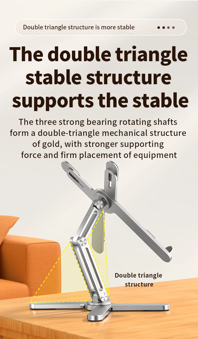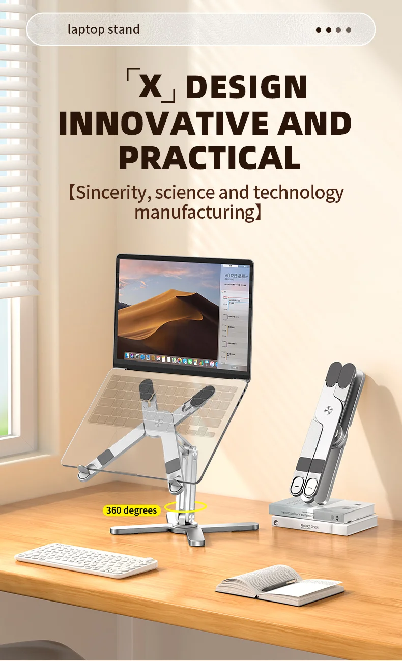 Upgrade your workspace with this Foldable Laptop Stand featuring 360° rotation and premium aluminum alloy construction. Designed for maximum comfort and convenience, this notebook table supports laptops, tablets, books, or notebooks while helping reduce neck and back strain through adjustable angles and full rotation.