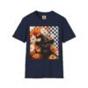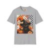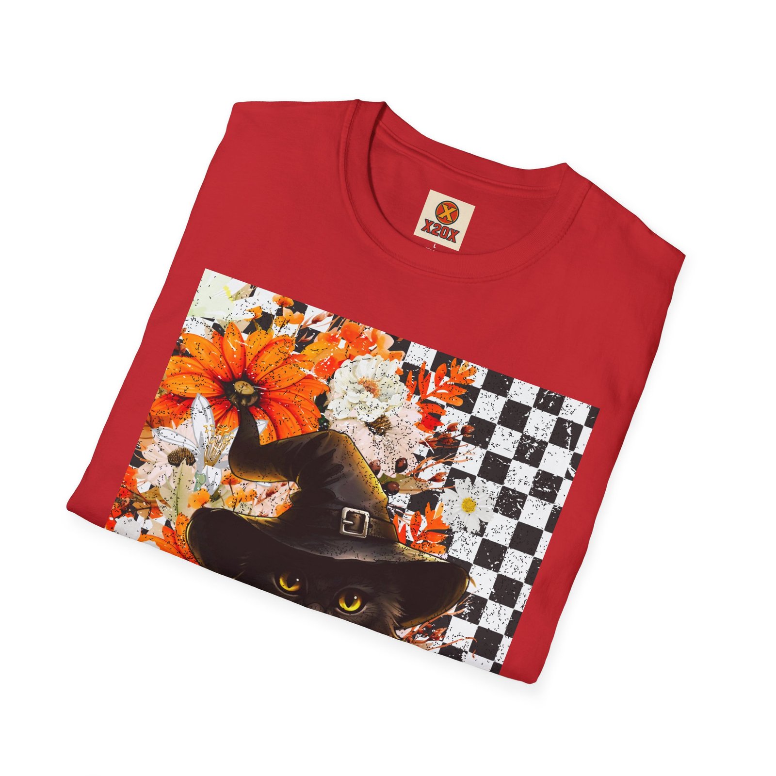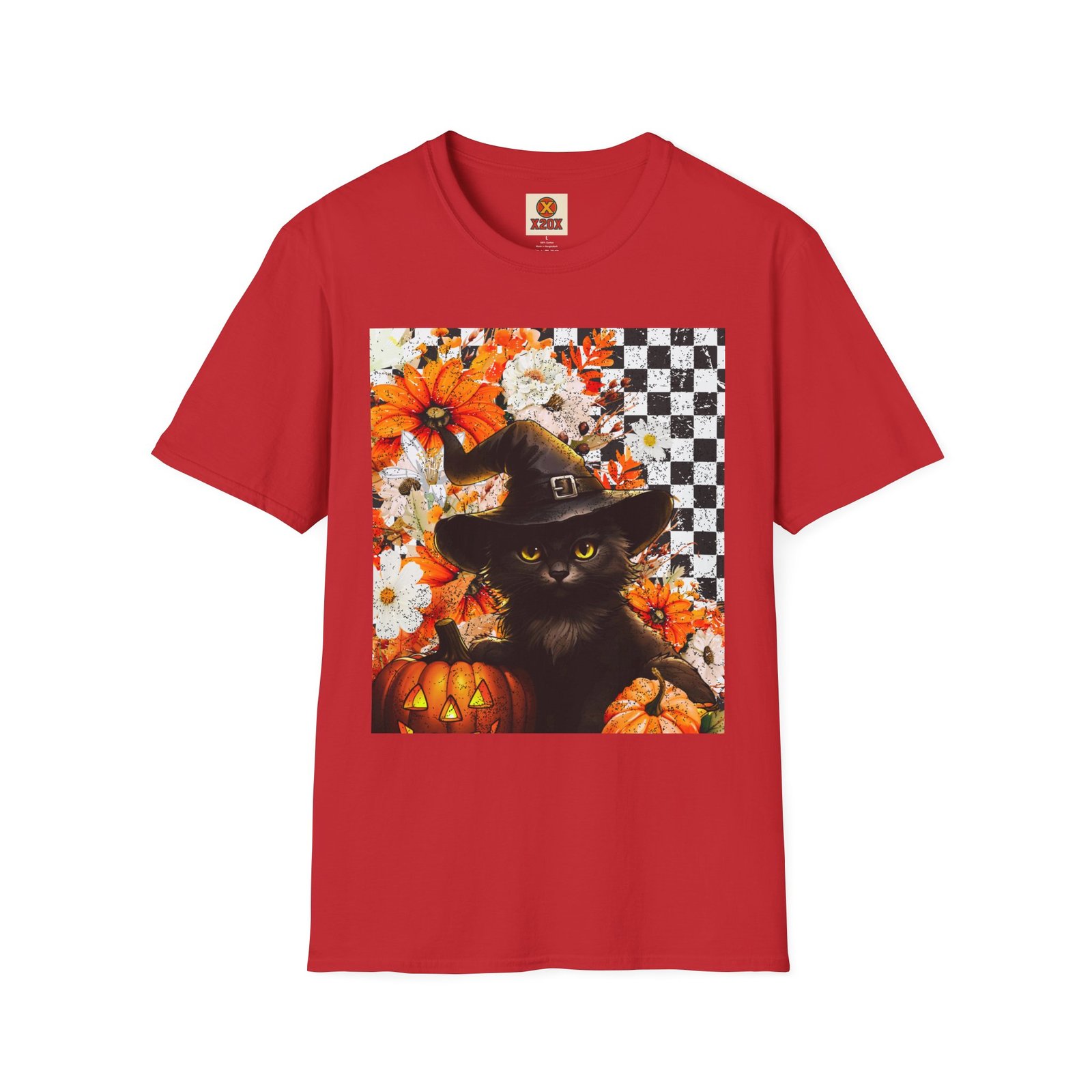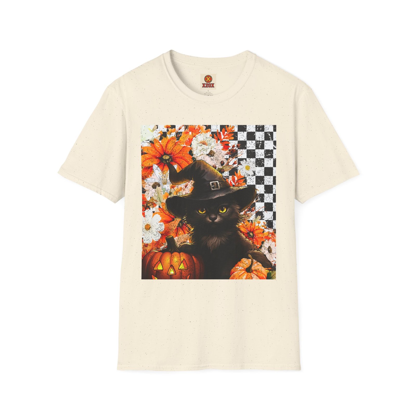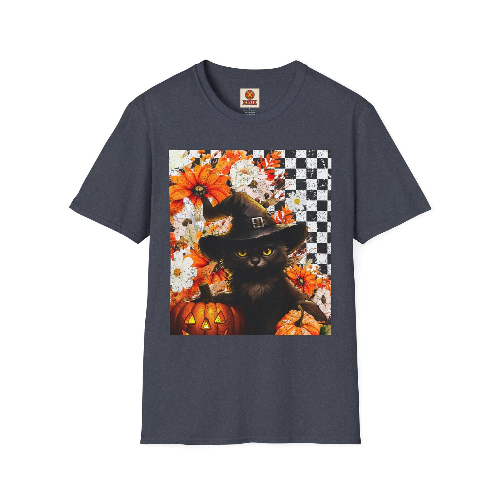 Experience the magic of autumn with this vibrant unisex t-shirt that showcases a whimsical black cat, adorned with a witch’s hat, amidst a backdrop of cheerful pumpkins and flowers. Perfectly blending playful and chic, this t-shirt is designed to add a touch of festivity to your everyday wardrobe. Its soft, lightweight fabric ensures comfort all year round, making it an excellent choice for casual outings, cozy gatherings or spirited Halloween celebrations. Perfect for cat lovers and anyone who enjoys embracing the enchanting vibes of fall, this t-shirt is a delightful addition to your seasonal attire. Wear it while hosting a Halloween party, trick-or-treating, or simply enjoying a brisk autumn day. Celebrate the spirit of the season with style! Product features – Without side seams for added comfort and reduced fabric waste. – Highly elastic ribbed collar retains shape for lasting wear. – Shoulder tape stabilizes seams to prevent stretching. – Made from durable, smooth fabric perfect for vibrant printing. – Ethically produced using 100% ring-spun cotton for a soft feel. Care instructions – Do not dryclean – Do not bleach – Tumble dry: low heat – Iron, steam or dry: low heat – Machine wash: cold (max 30C or 90F), with similar colors