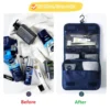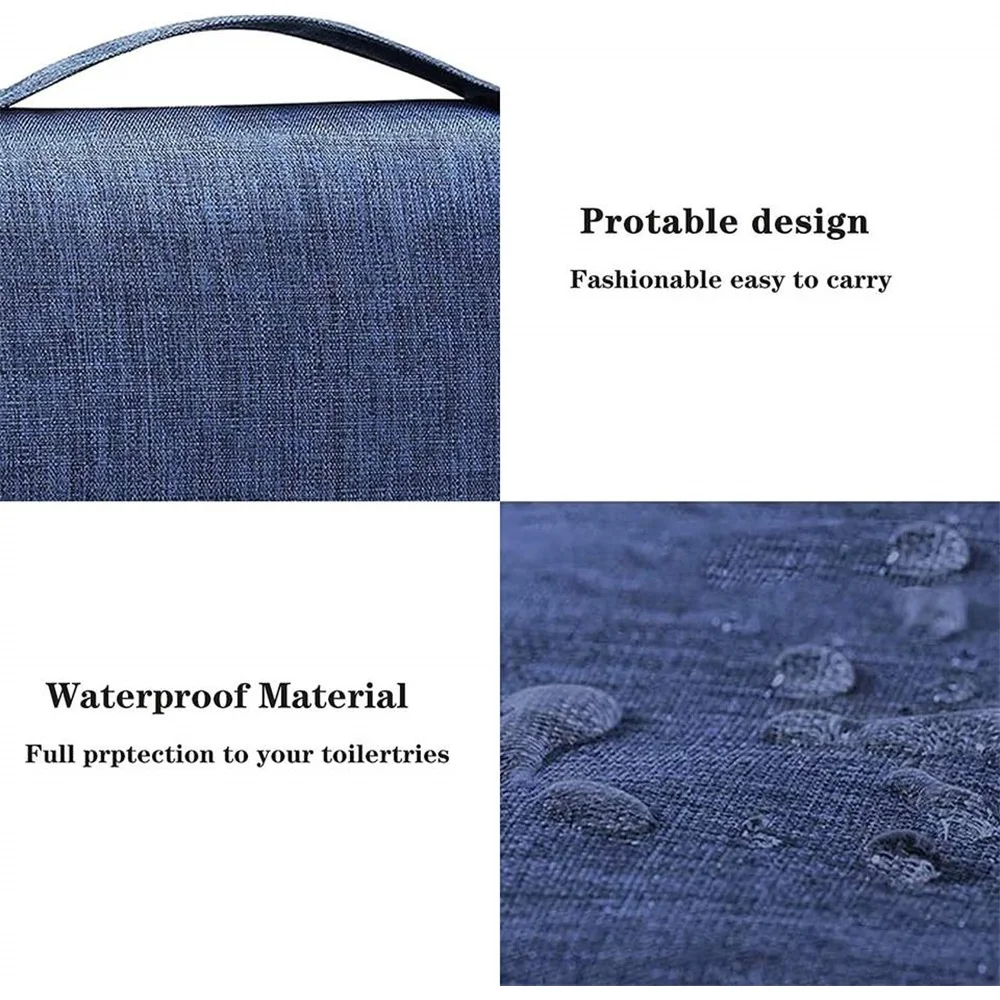- 3.Large Storage Capacity: You can put your make-up, shampoo, toothbrush, toothpaste and so on, all in one place. Make your travel comfortably to have all your necessities in one bag.