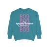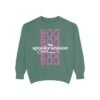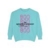 Step into spooky season with this Sassy Halloween Sweatshirt – a cozy, unisex pullover designed for comfort and festive style. Featuring a fun “Boo” graphic, this sweatshirt adds the perfect touch of sass to your autumn wardrobe. 🌙 Why You’ll Love It: Soft cotton-blend fabric for all-day comfort Unisex relaxed fit – flattering for men & women Perfect for pumpkin patch trips, Halloween parties, or cozy nights in Makes a fun, thoughtful Halloween gift for friends, family, or coworkers 🎃 Versatile Styling: Pair it with jeans, leggings, or joggers for an effortless seasonal look. Whether you’re carving pumpkins, attending a fall festival, or just enjoying spooky movies at home, this sweatshirt keeps you warm and stylish. ✨ Details: Material: Cotton/poly blend (soft & durable) Fit: Unisex, true to size (size up for oversized look) Care: Machine washable (cold wash, tumble dry low) Product features – 1×1 ribbed collar, cuffs, and bottom hem for a fitted look – Necktape for enhanced comfort and stability – Unique back detail with a half-moon neck patch – Soft, luxurious fabric blend ideal for printing – OEKO-TEX certified low-impact dyes for eco-friendliness Care instructions – Machine wash: cold (max 30C or 90F) – Non-chlorine: bleach as needed – Tumble dry: low heat – Do not iron – Do not dryclean