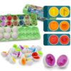 1. SORT & MATCH BY COLOR OR SHAPE: Educational egg toy is like a real egg size making it perfect for little hands to grasp and play.