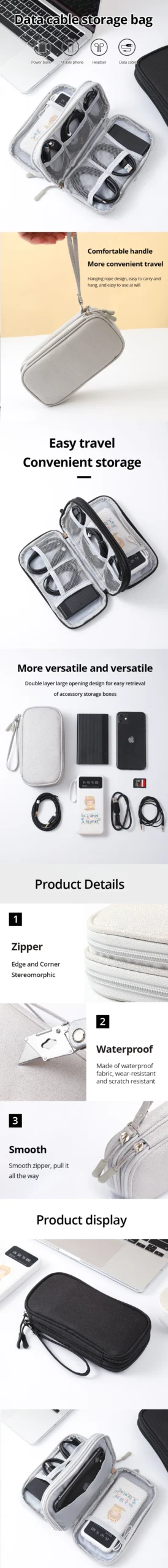 1: Large capacity, easy to fit digital accessories such as power banks, phones, data cables, etc