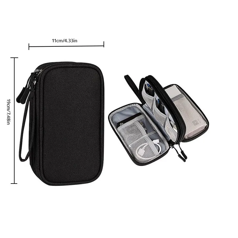 This travel case is designed for organizing and protecting electronic accessories with its compact size of 7.5" x 4.3" x 2.2". Its lightweight build makes it easy to carry in backpacks, handbags, or laptop bags without occupying much space. Made from durable waterproof oxford material and soft sponge interior, it ensures your gadgets are secure and easily accessible.